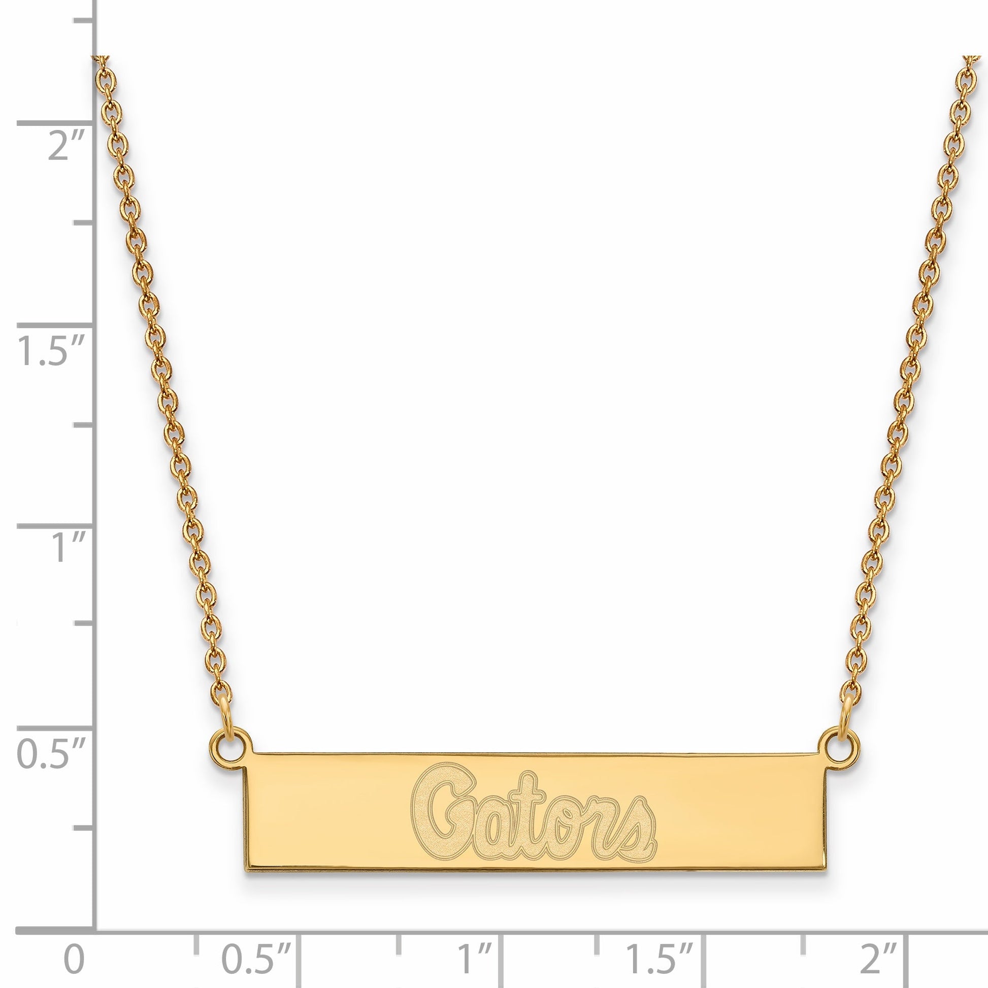 Show off your school pride with the SS/Gold Plated Sterling Silver University of Florida Gators Script Small Bar Necklace. Crafted from high-quality sterling silver, this 18-inch chain features a polished finish and a bold gold plating that catches the light. The necklace showcases the iconic Gators logo in a sleek script design, perfect for everyday wear or game days. Designed with a cable chain, it offers comfort and style, while the licensed NCAA logo proves its authenticity. Whether you're on campus or out with friends, the Gold-Plated Logoart University of Florida Gators Necklace is a sharp way to display your Gator spirit.