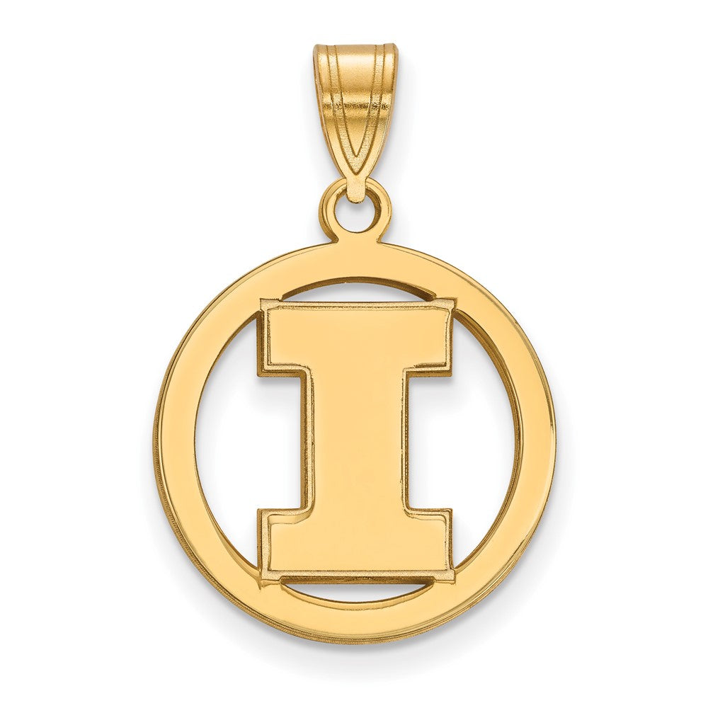 Show your school spirit with the LogoArt University of Illinois Letter I Pendant. Crafted from genuine sterling silver, this piece is finished with a bright gold plating that makes it stand out. Measuring 25 mm in length, it features a sleek, laser-cut design with a polished look. The pendant highlights the iconic "I" within a medium circle, perfect for fans and alumni alike. It comes with a sturdy 4 mm bail, making it easy to add to your favorite chain. The logo is officially licensed, giving you a stylish way to celebrate your Illinois pride.