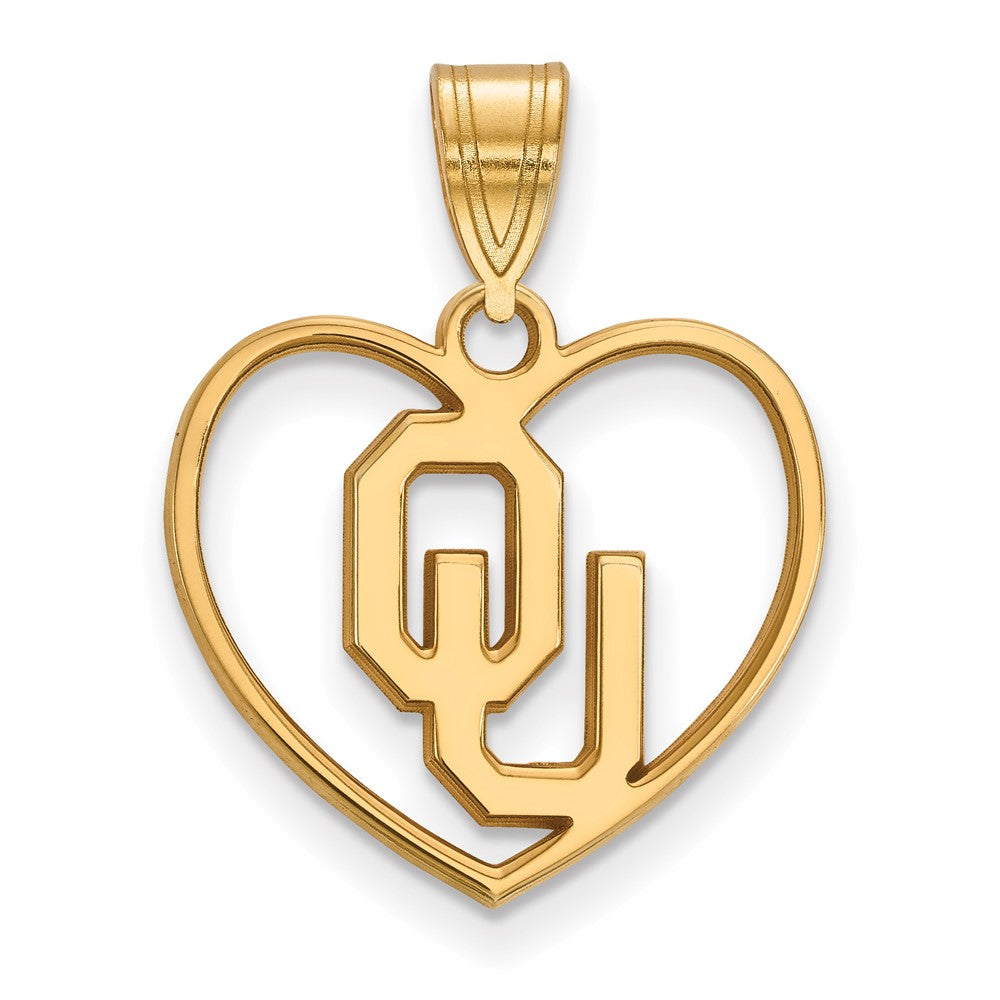 Show your pride with the SS/Gold Plated Sterling Silver University of Oklahoma O-U Heart Pendant. Crafted from high-quality sterling silver, this pendant measures 21 mm long and features a sleek, laser-cut Oklahoma logo. It’s covered with a bright gold plating that adds a rich look. The pendant has a charm size of 15 by 17 mm and a bail that fits many chains. Licensed by NCAA and made by LogoArt LLC, this medium-sized piece is perfect for fans wanting to wear their school spirit. The University of Oklahoma logo shines bright in this stylish pendant for everyday wear.