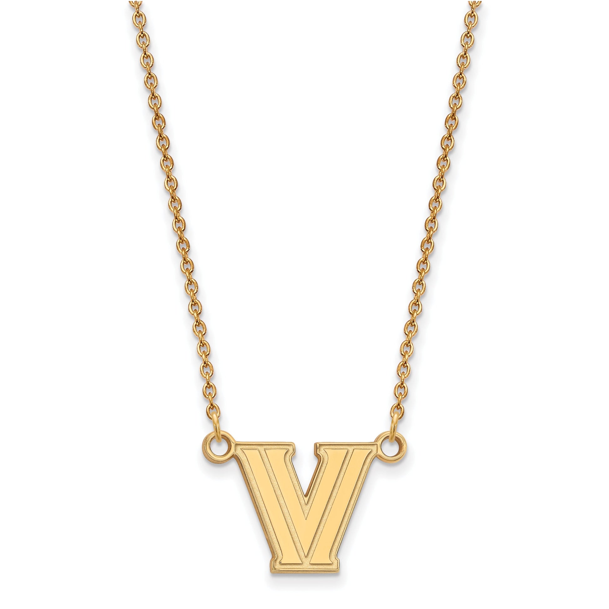 Show your school spirit with the LogoArt Villanova University Letter V Small Pendant Necklace. Crafted from sterling silver and finished with a bright gold plating, this piece offers a sleek look. The pendant is 14 mm wide and hangs on an 18-inch cable chain, making it perfect for everyday wear. The laser-cut design features the iconic Villanova V, symbolizing pride for Pennsylvania’s well-known university. This NCAA-licensed jewelry piece is durable and stylish. Whether you’re at class or out with friends, the LogoArt Villanova Letter V Necklace adds a touch of school pride and shines with simple elegance.