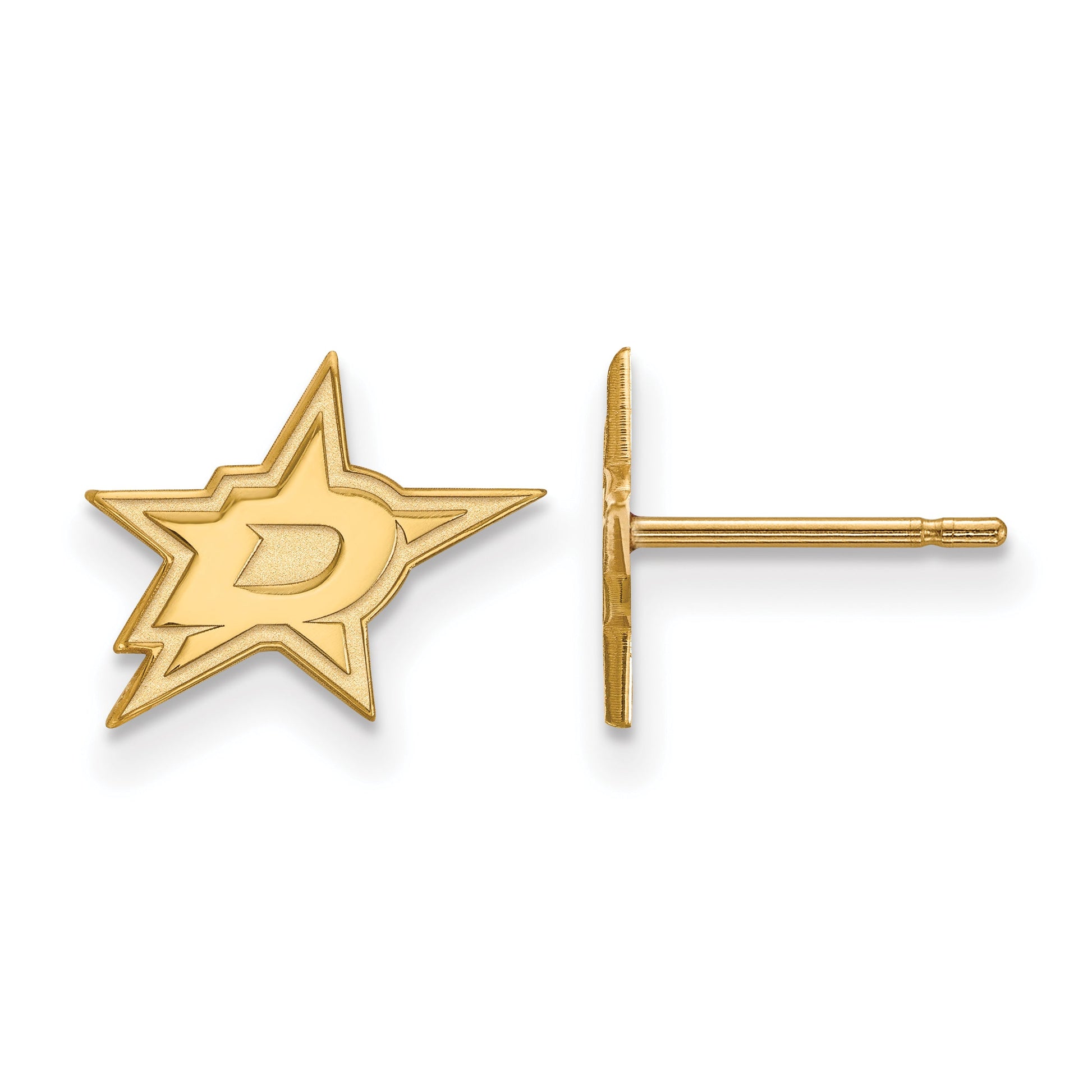Show your team pride with the SS/Gold Plated Sterling Silver Dallas Stars Extra Small Post Earrings. Crafted from pure sterling silver and coated with bright gold plating, these earrings feature the iconic Dallas Stars logo. Designed for women who love subtle style, they are perfect for everyday wear or game day. These earrings are lightweight, comfortable, and offer a sleek, gold tone finish. Made in Texas, each pair is licensed by NHL and LogoArt LLC, ensuring quality. The Dallas Stars Silver Earrings make a great gift for any fan and add a touch of team spirit to your look.