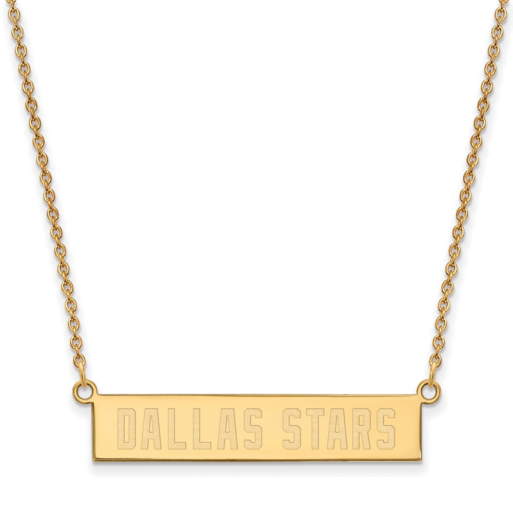 Show your team pride with the SS/Gold Plated Sterling Silver Dallas Stars Small Bar Necklace. Crafted from high-quality sterling silver and finished with a bright gold plating, this 18-inch necklace features the official Dallas Stars logo. It’s a stylish way to support your favorite team every day. The necklace is lightweight yet durable, perfect for everyday wear. Licensed by the NHL, the Dallas Stars Small Bar Necklace by LogoArt LLC promises authenticity. Wear this jewelry piece to show your love for hockey and your team spirit. The Dallas Stars Small Bar Necklace is a true fan's must-have.