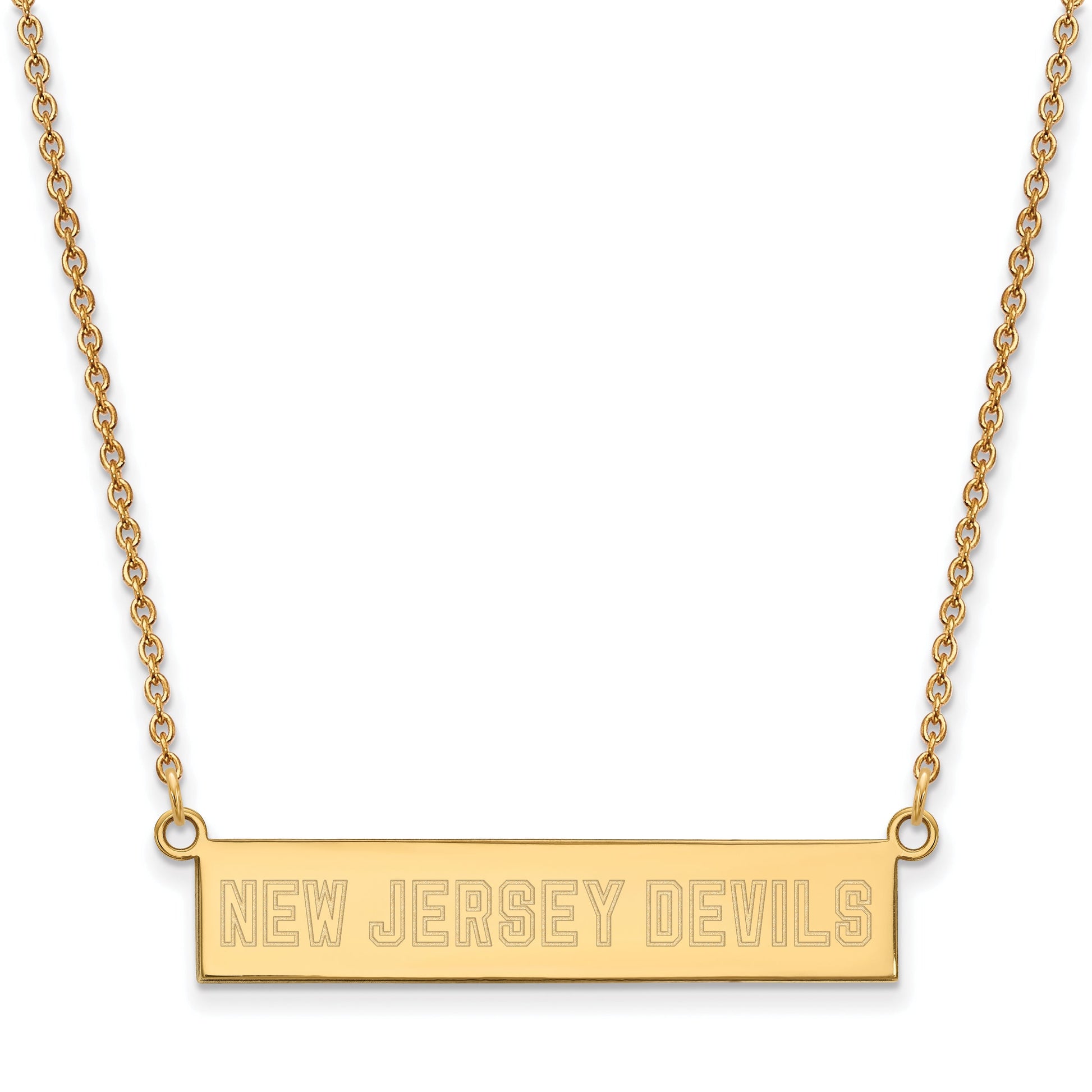 Celebrate your team spirit with the Ss/Gold Plated Sterling Silver New Jersey Devils Necklace. Crafted from high-quality sterling silver and finished with a bright gold plating, this 18-inch necklace features the official NHL New Jersey Devils logo. It’s designed to last and show off your team pride every day. Whether you're out or at home, this jewelry piece is a perfect way to stay connected to your team. The sturdy chain and bold logo make it a great gift for any Devils fan. The Ss/Gold Plated Sterling Silver New Jersey Devils Necklace combines style, quality, and loyalty in one beautiful piece.