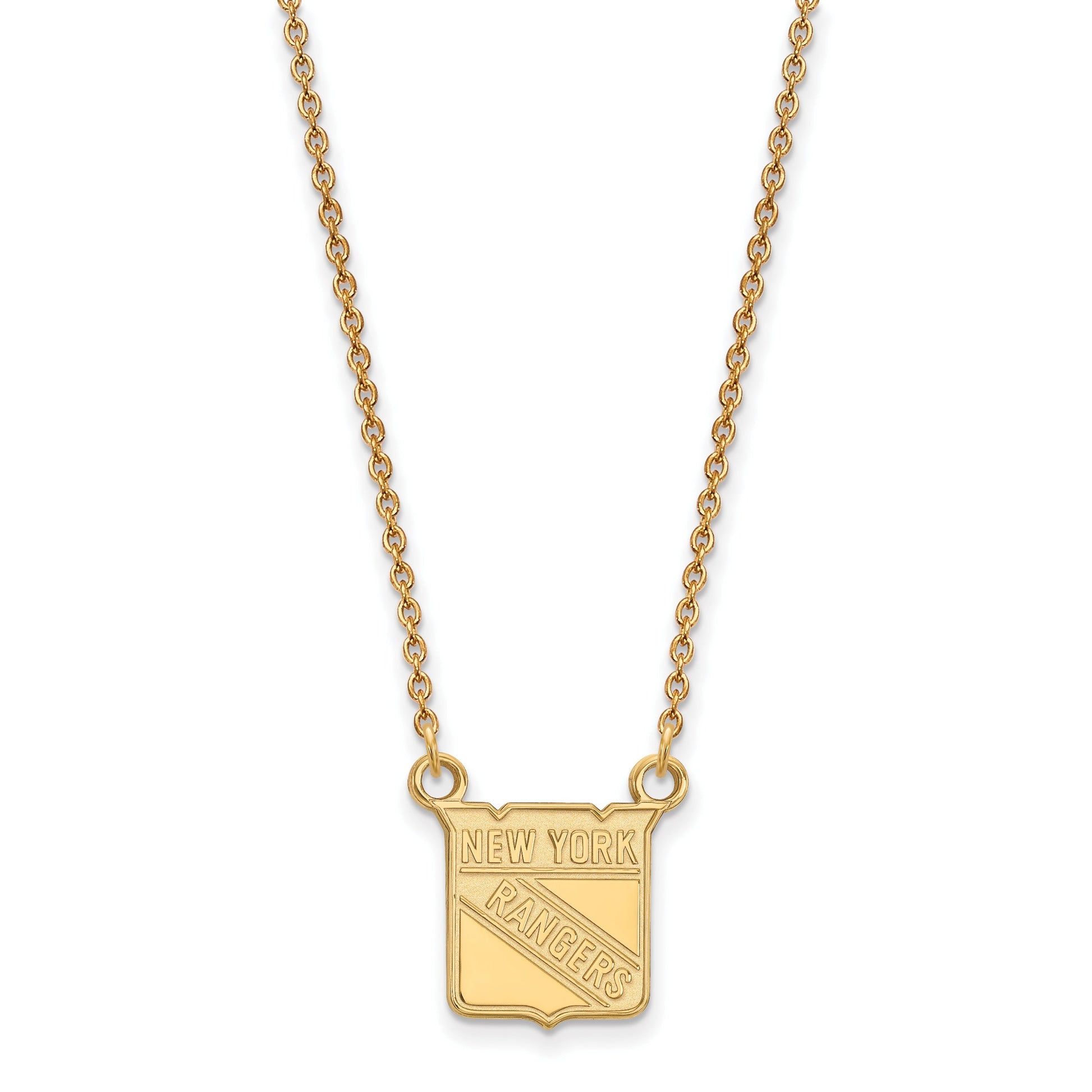 Show your team spirit with the NHL New York Rangers small pendant necklace by LogoArt LLC. Crafted from pure sterling silver and plated in bright gold, this 18-inch chain features a laser-cut Rangers logo charm that measure 15 mm by 13 mm. Its unisex design makes it perfect for any fan, whether you root for the home team or just love the sleek look. The solid construction ensures this piece lasts through many game days, letting you show pride for New York in style. The New York Rangers small pendant necklace is a must-have for true sports fans who want subtle flair.