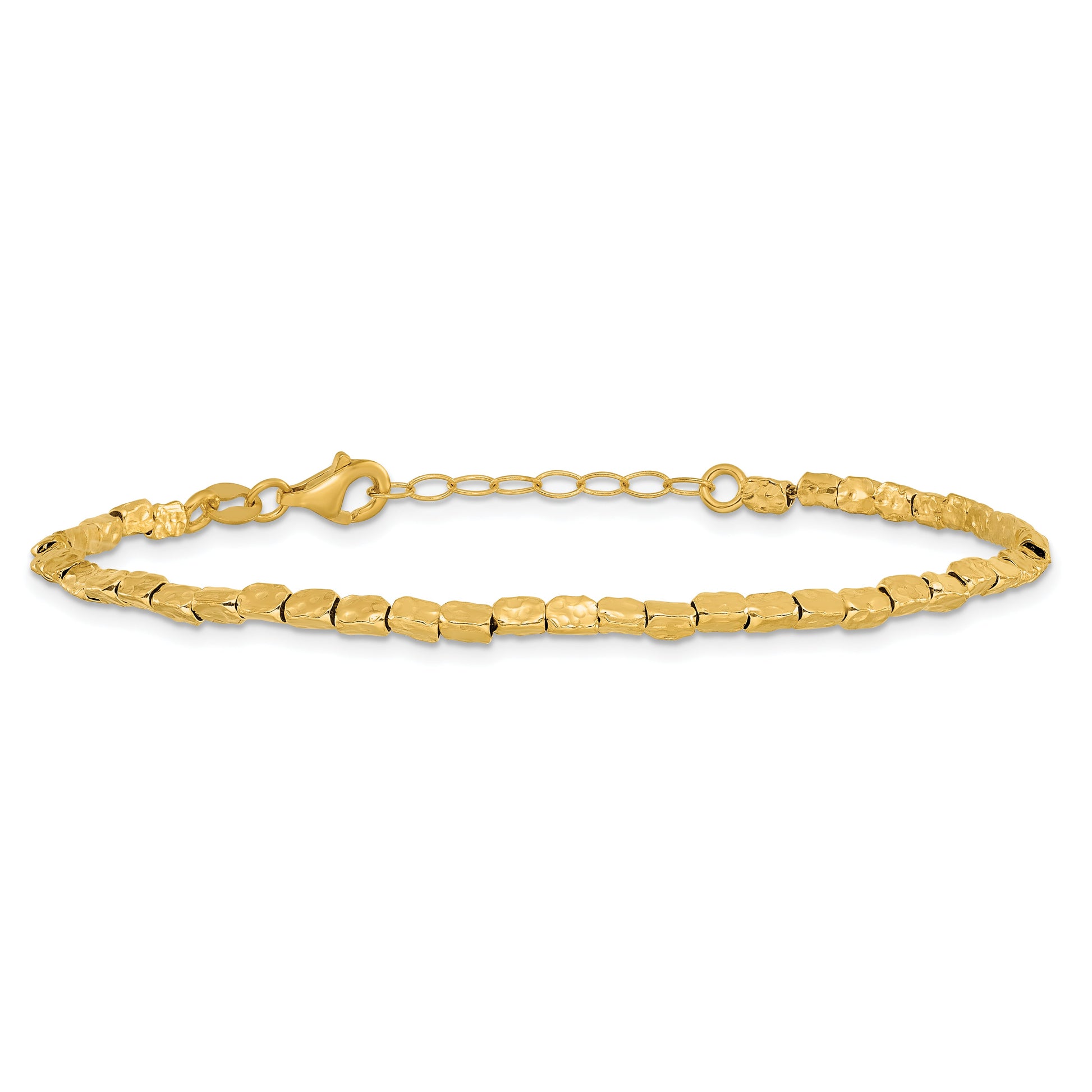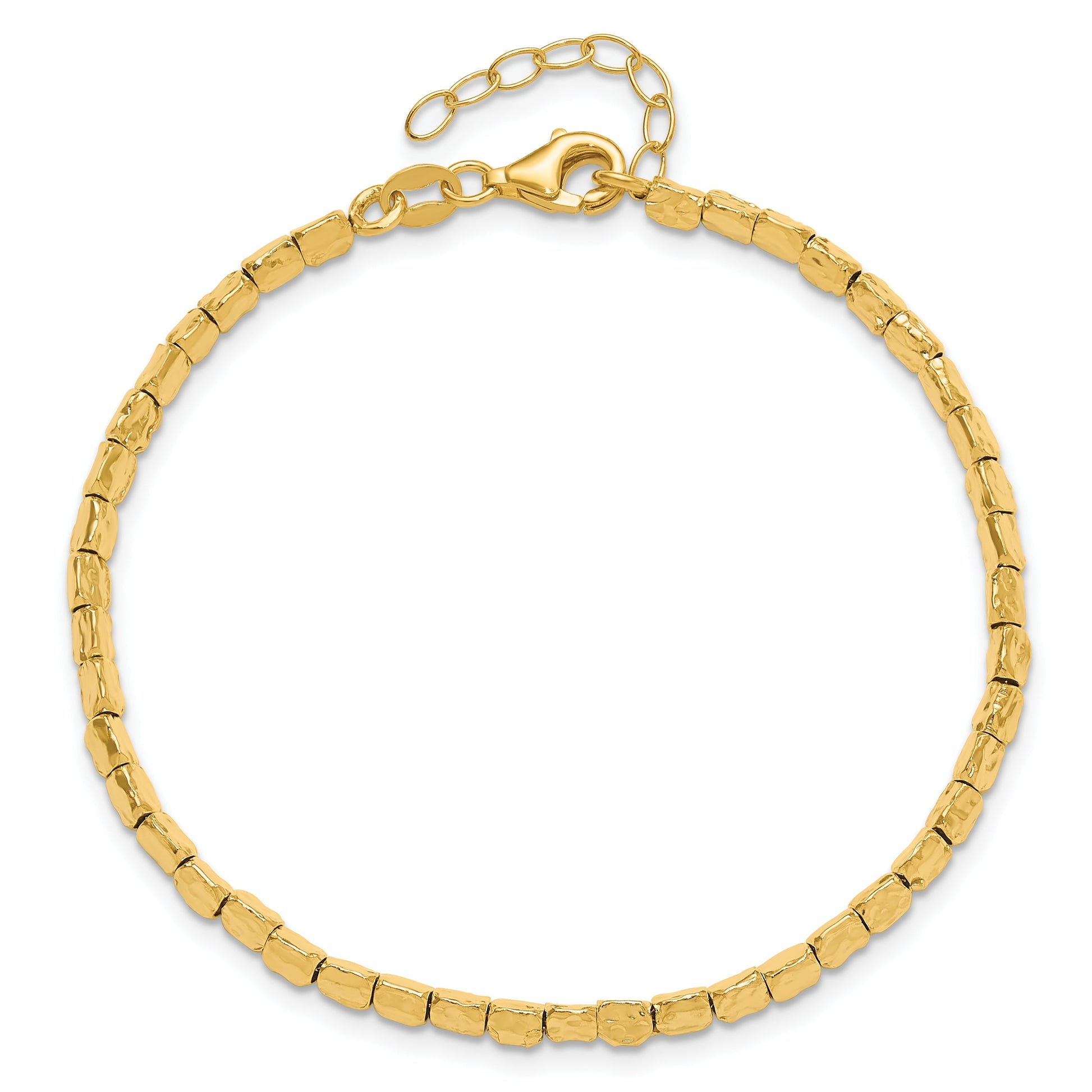 Discover the stunning Gold-Plated Sterling Silver Bracelets, a perfect addition to any woman's jewelry collection. Crafted from high-quality 925 sterling silver, each piece features a polished and hammered finish that catches the eye. The bracelet measures 8 inches long with a 7-inch chain and a 1-inch extender, allowing for a comfortable fit. Its yellow gold tone adds warmth and elegance, while the bead design brings a touch of charm. With a secure lobster clasp and lifetime guarantee, the Gold-Plated Sterling Silver Bracelets blend style and durability effortlessly.