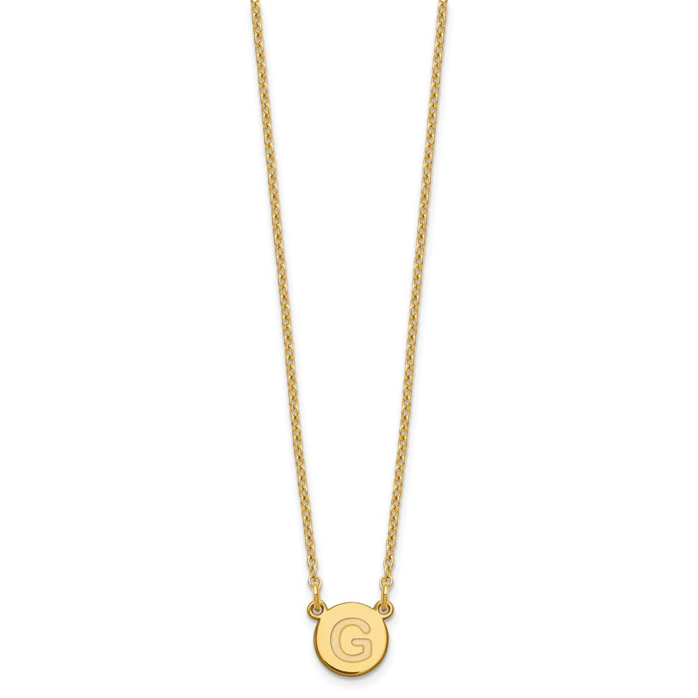 Make a statement with the SS/Gold Plated Sterling Silver Tiny Circle Block Letter G Initial Necklace. Crafted from pure 925 sterling silver and finished with a shiny gold plating, this 18-inch cable chain necklace layers style with simplicity. The small round pendant features a bold letter G, perfect for adding a personal touch to your look. Its sleek design and durable material make it a versatile piece you can wear daily. The SS/Gold Plated Sterling Silver Tiny Circle Block Letter G Initial Necklace is a must-have for a touch of charm and elegance in your jewelry collection.