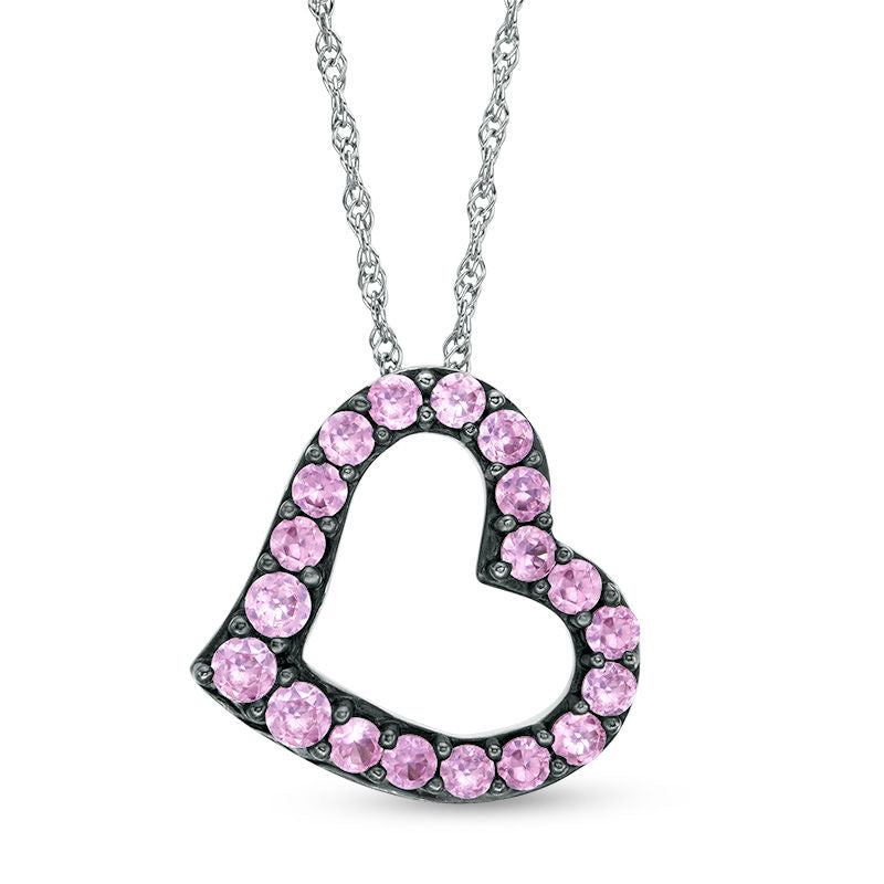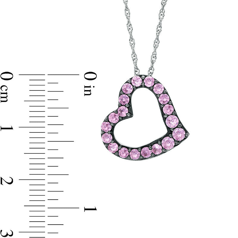 Graduated Lab-Created Pink Sapphire Tilted Heart Pendant in Sterling Silver with Black Rhodium