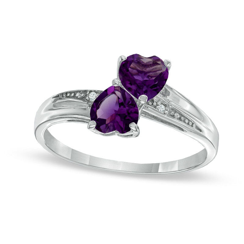 Heart-Shaped Amethyst and Natural Diamond Accent Double Heart Ring in Sterling Silver