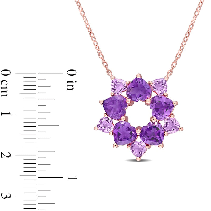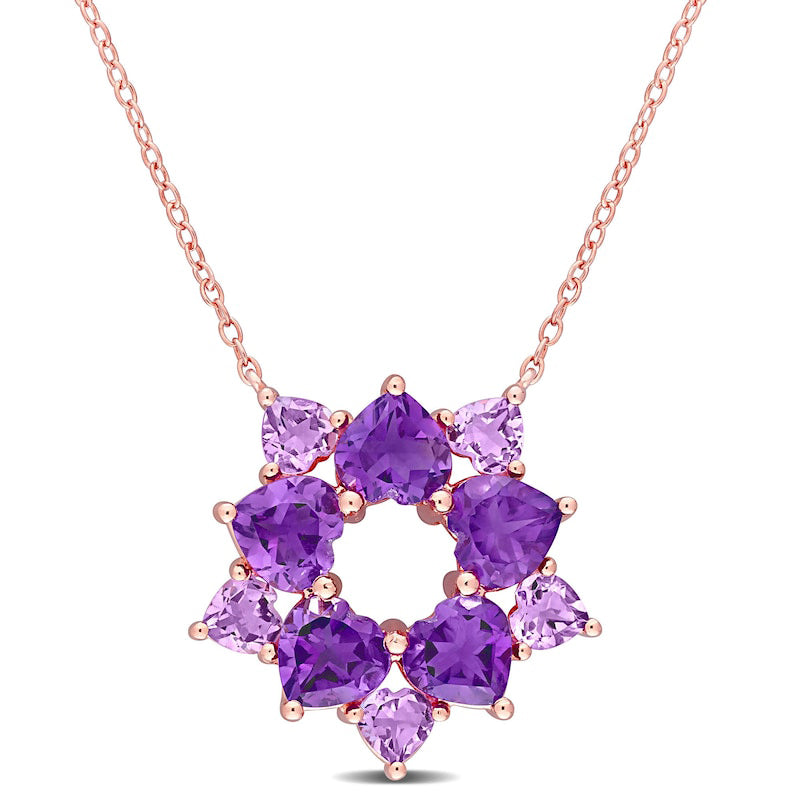 Heart-Shaped Amethyst and Rose de France Open Flower Necklace in Sterling Silver with Rose Rhodium