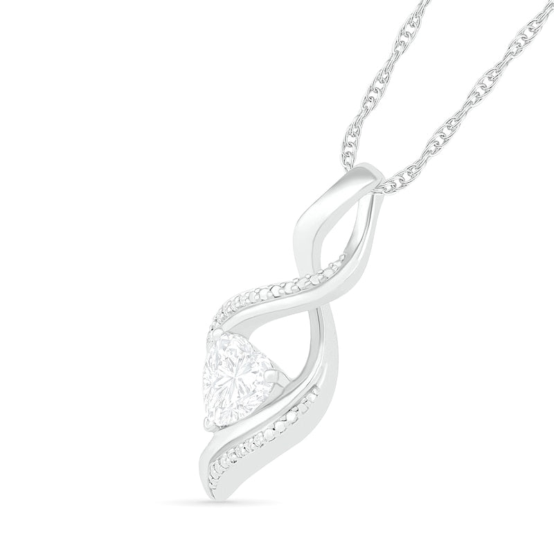 Heart-Shaped White Lab-Created Sapphire and Diamond Accent Infinity Flame Pendant in Sterling Silver