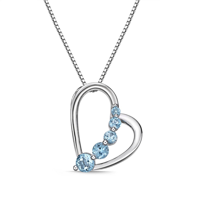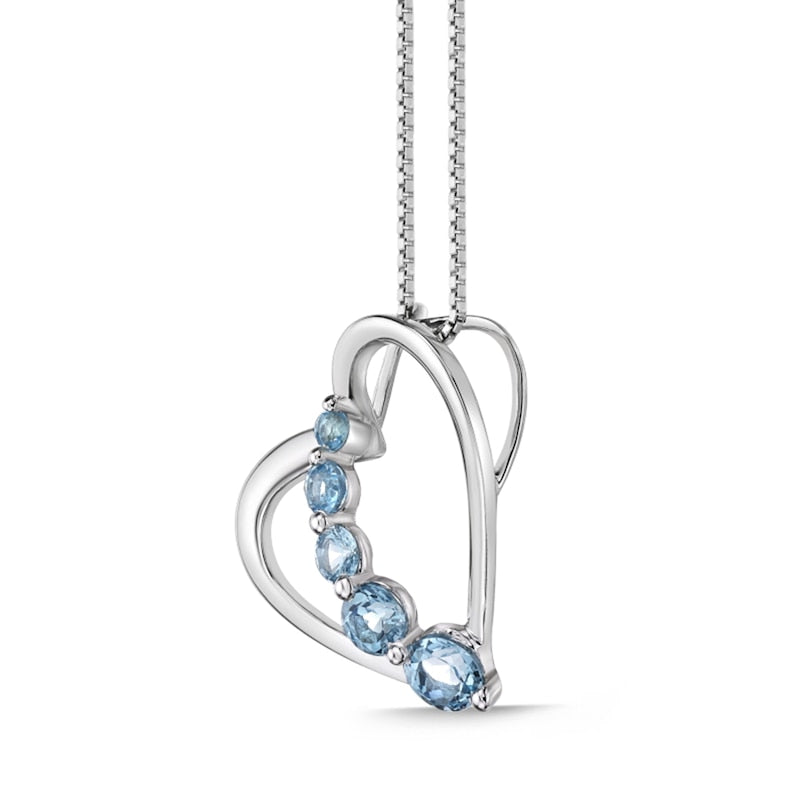 Journey Blue Topaz Tilted Heart Pendant in Sterling Silver
