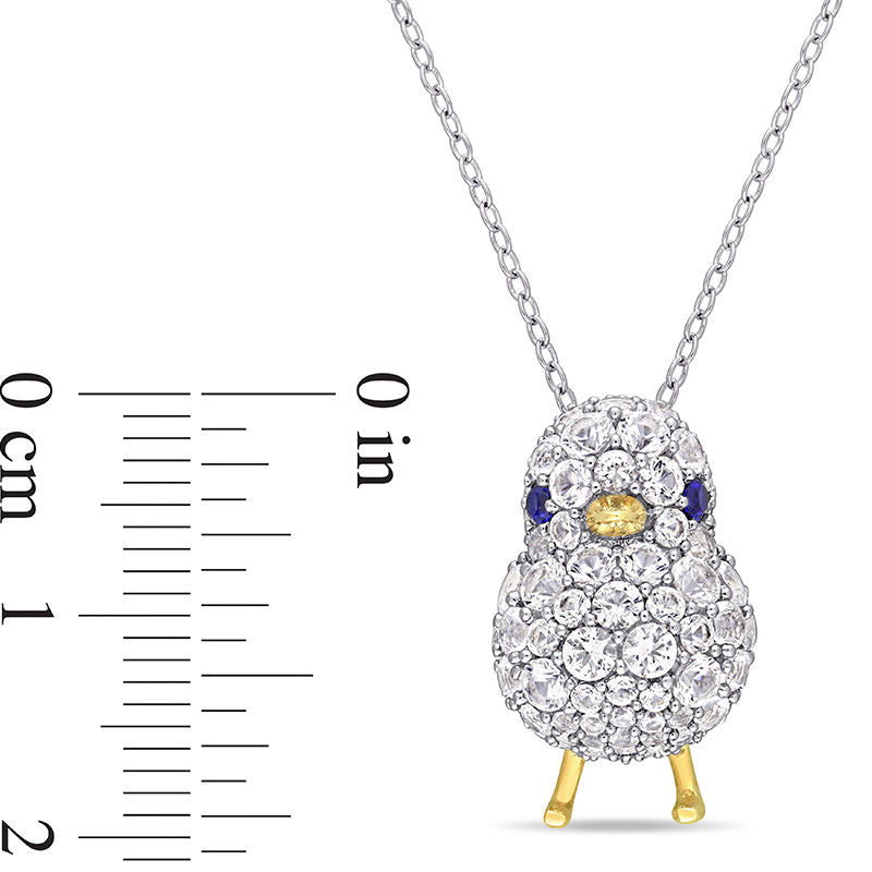 Lab-Created Blue and White Sapphire Chick Pendant in Sterling Silver and Yellow Rhodium