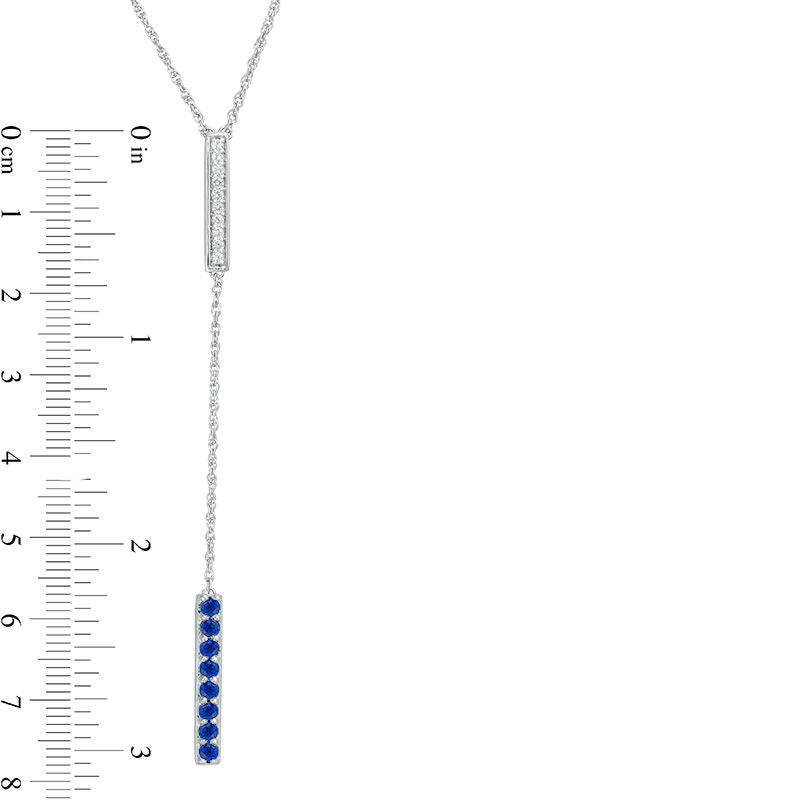 Lab-Created Blue and White Sapphire Double Bar Lariat-Style Necklace in Sterling Silver