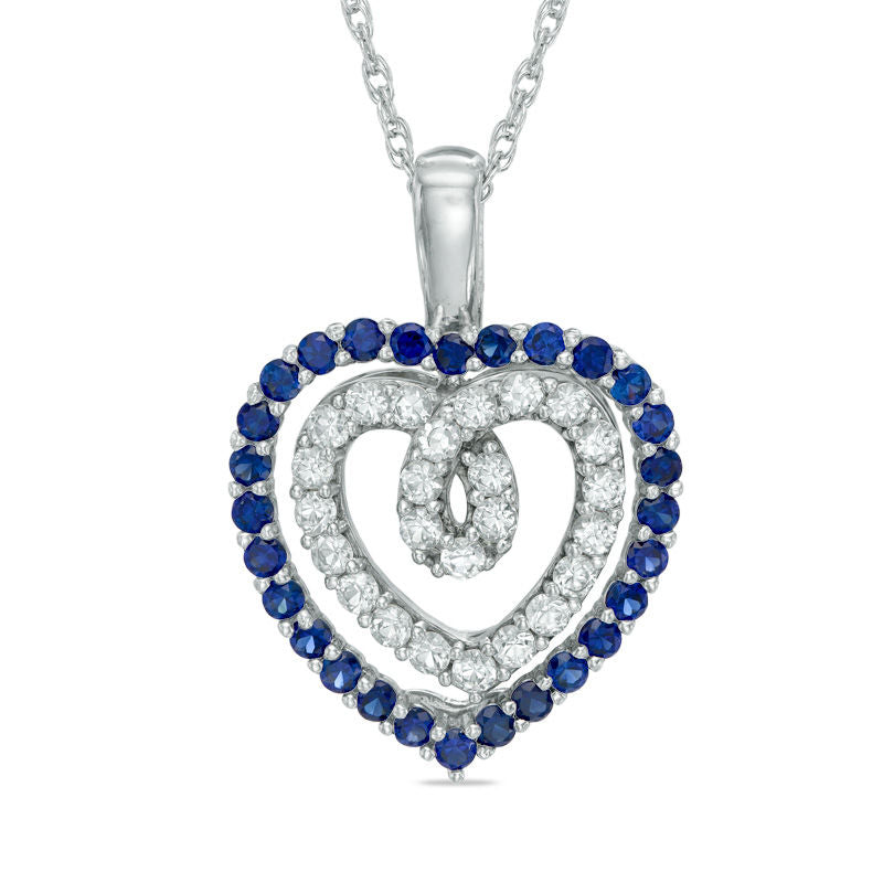 Lab-Created Blue and White Sapphire Interchangeable Double Heart Pendant in Sterling Silver