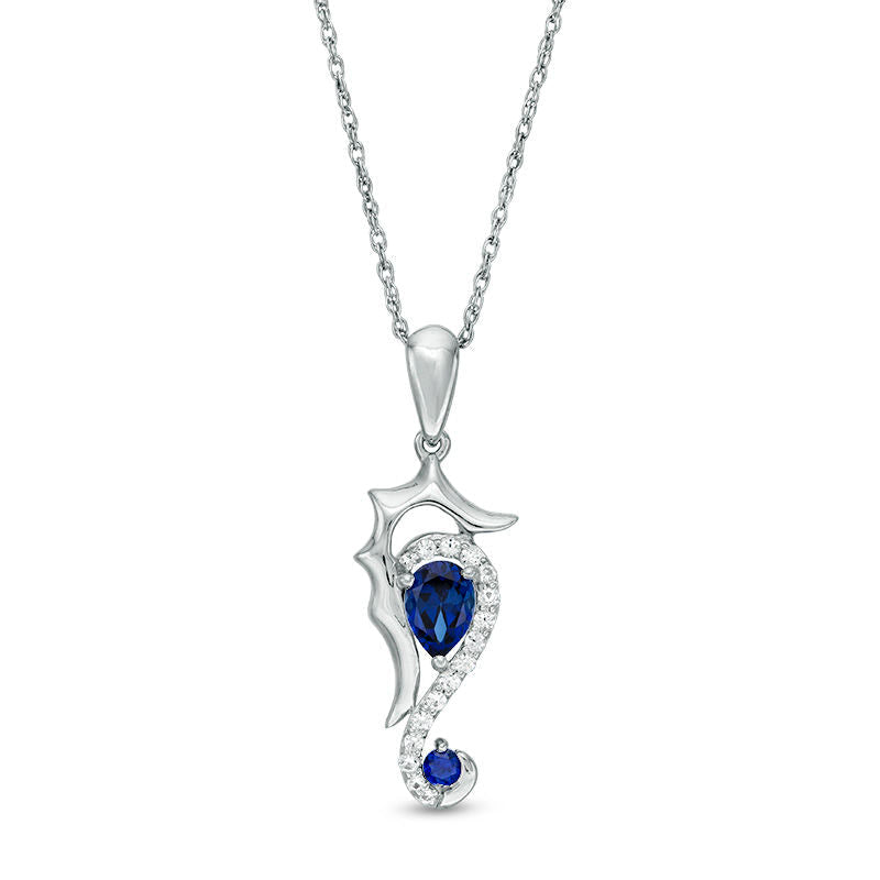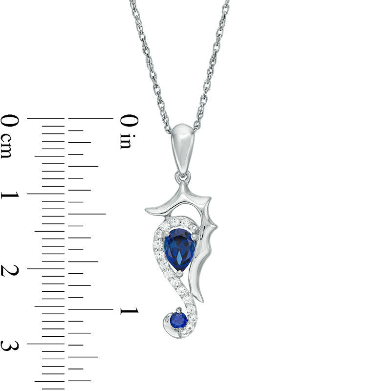 Lab-Created Blue and White Sapphire Seahorse Pendant in Sterling Silver
