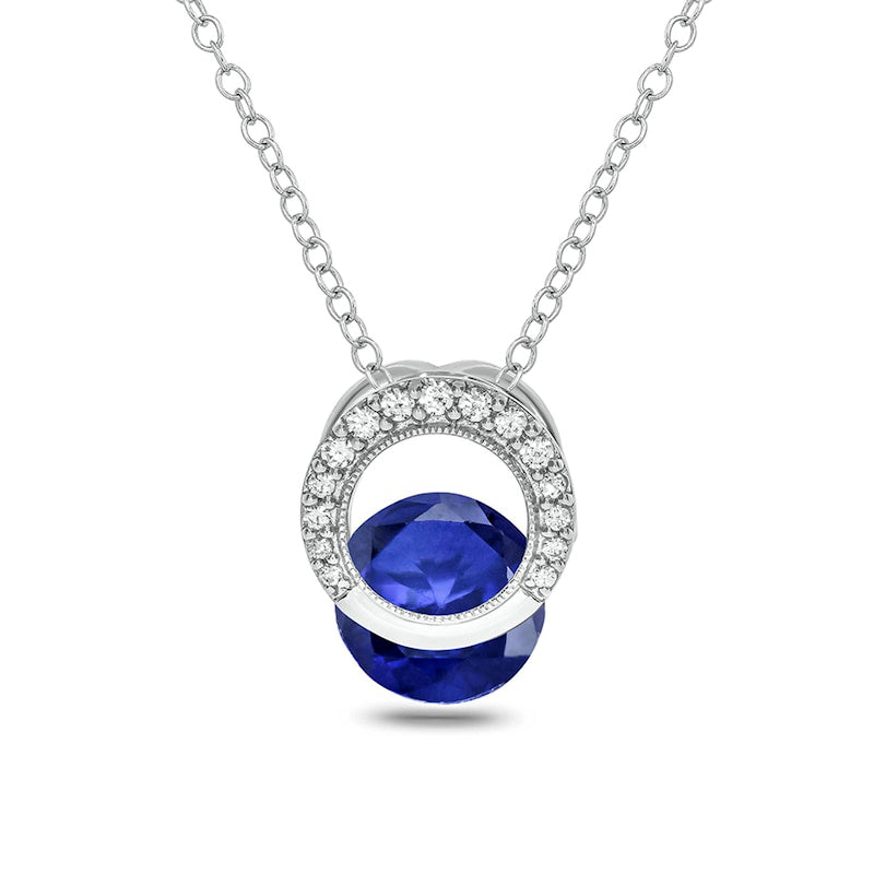 Lab-Created Blue Sapphire and 0.1 CT. T.W. Diamond Milgrain Open Circle Clip-Style Pendant in Sterling Silver