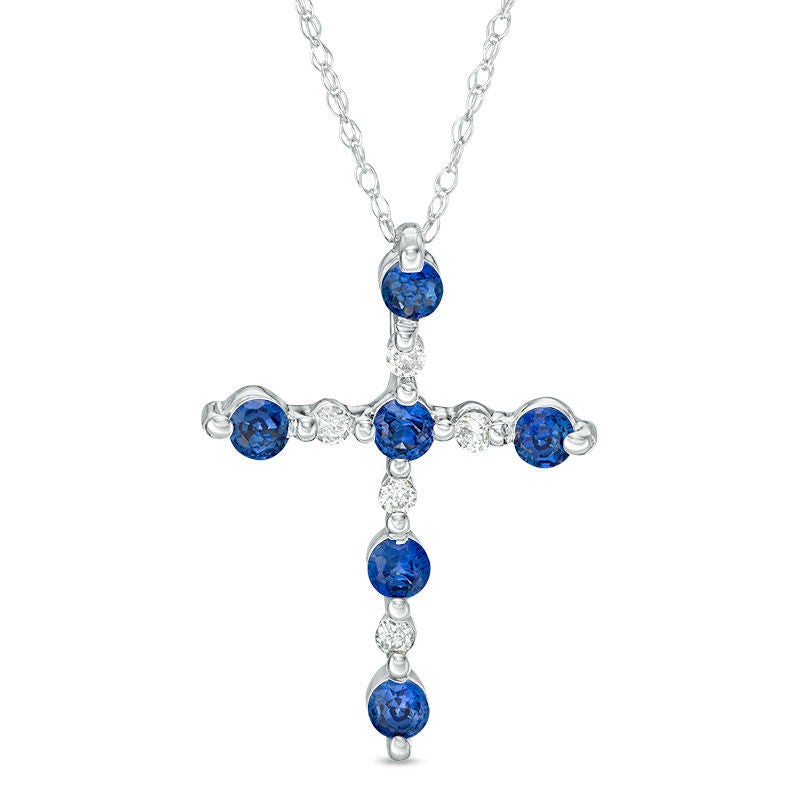 Lab-Created Blue Sapphire and Diamond Accent Cross Pendant in 10K White Gold