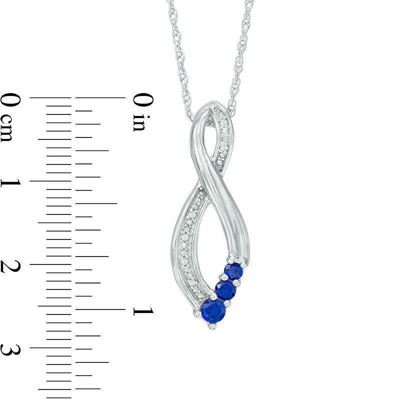 Lab-Created Blue Sapphire and Diamond Accent Three Stone Infinity Pendant in Sterling Silver