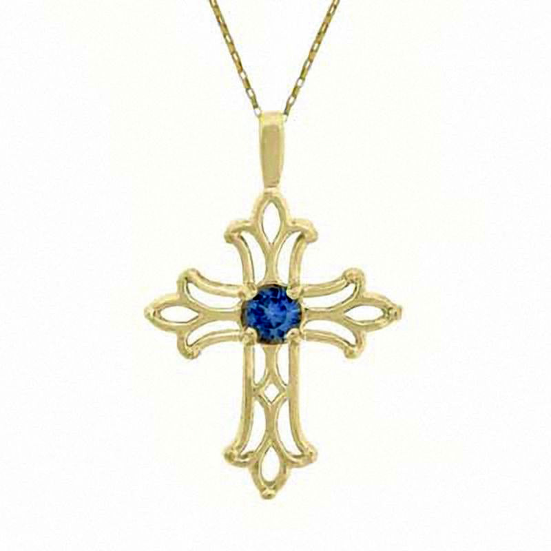 Lab-Created Blue Sapphire Birthstone Cross Pendant in 10K Yellow Gold