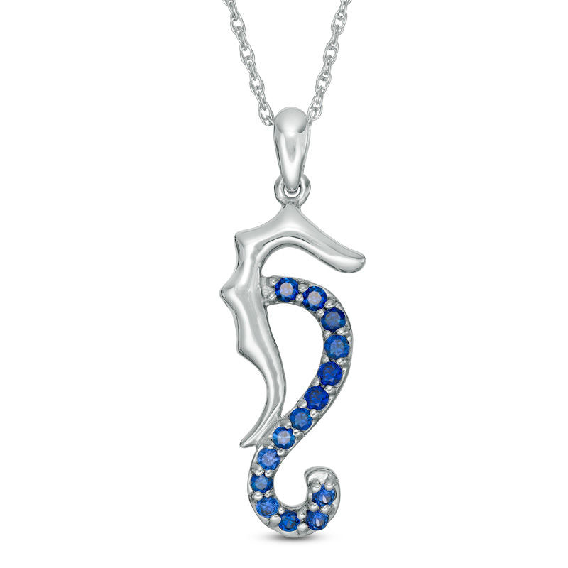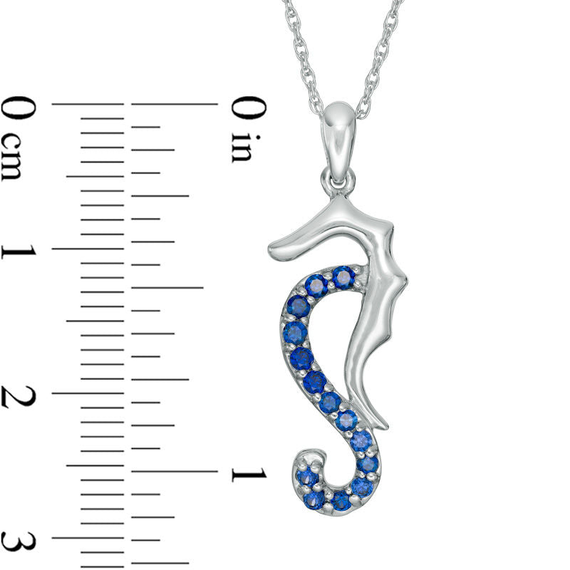 Lab-Created Blue Sapphire Seahorse Pendant in Sterling Silver
