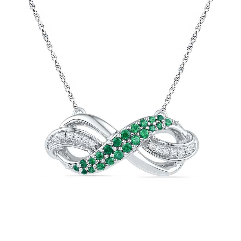 Lab-Created Emerald and 0.05 CT. T.W. Diamond Infinity Loop Necklace in Sterling Silver