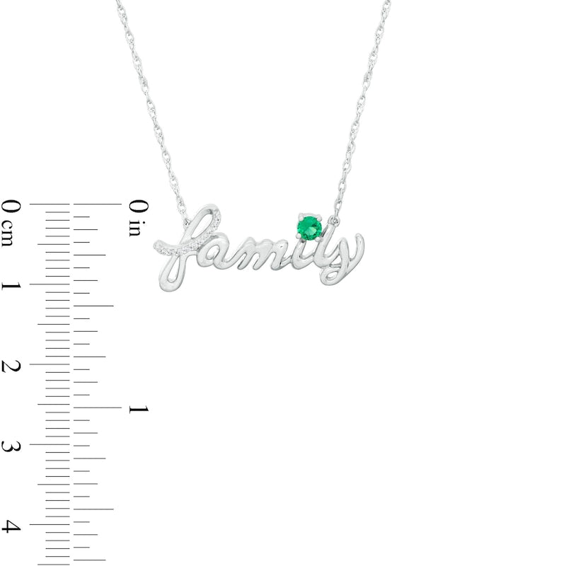 Lab-Created Emerald and Diamond Accent family" Script Necklace in Sterling Silver"