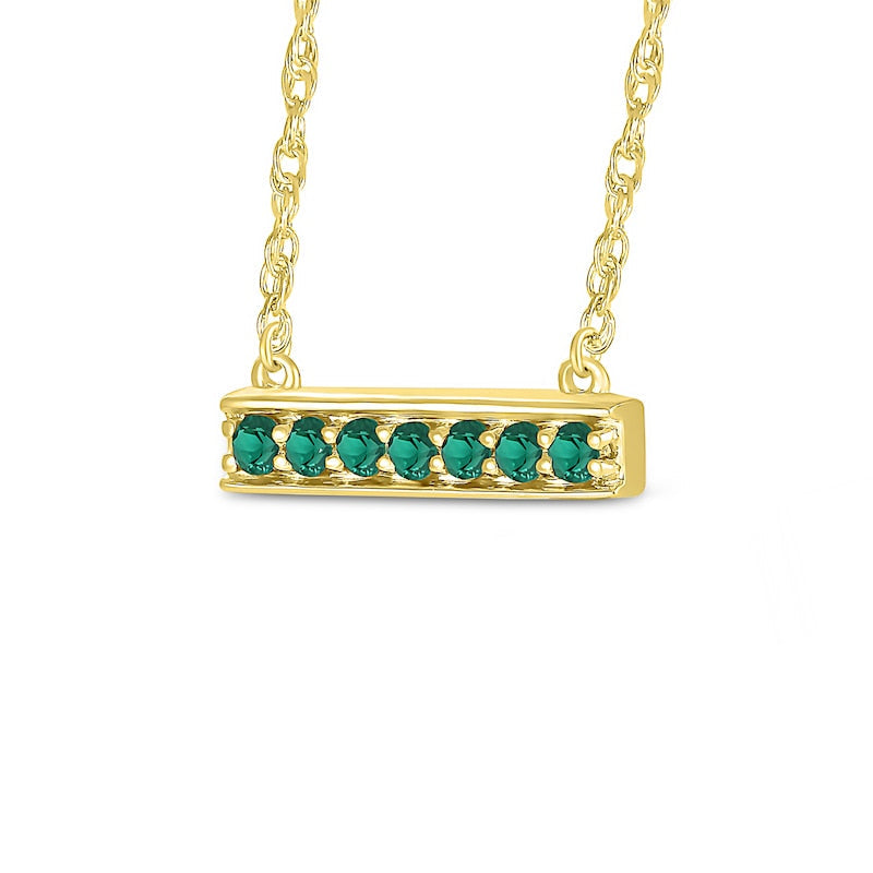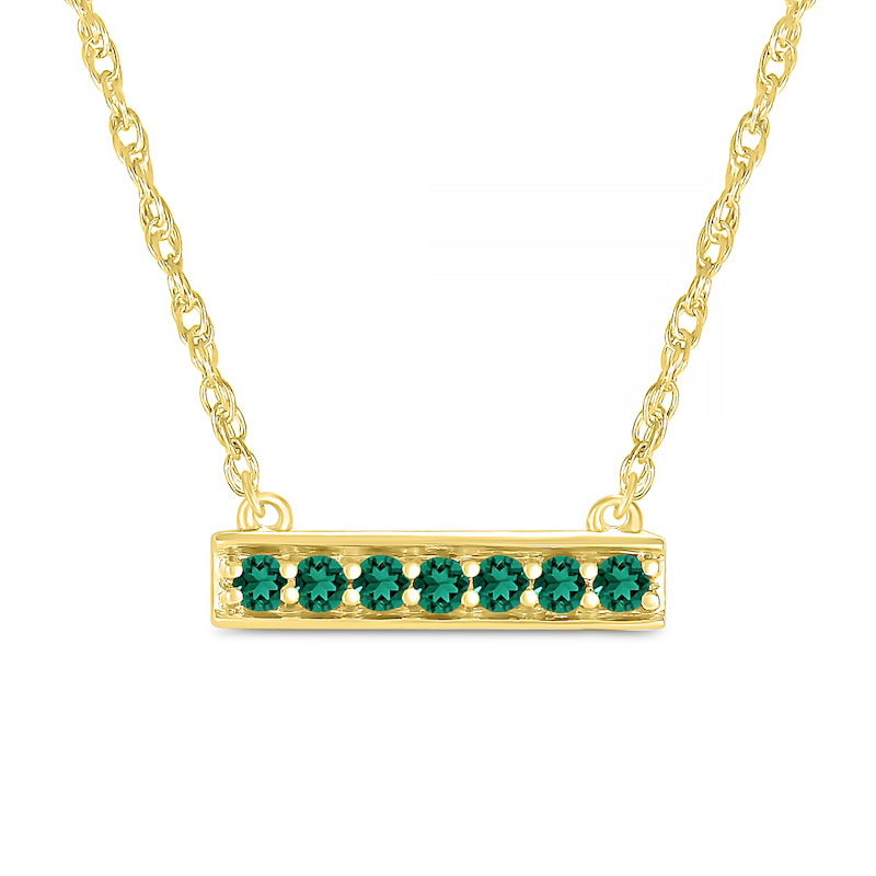 Lab-Created Emerald Seven Stone Border Bar Necklace in Sterling Silver with 14K Gold Plate