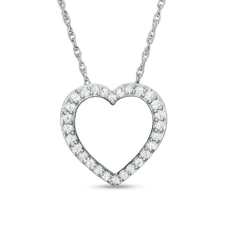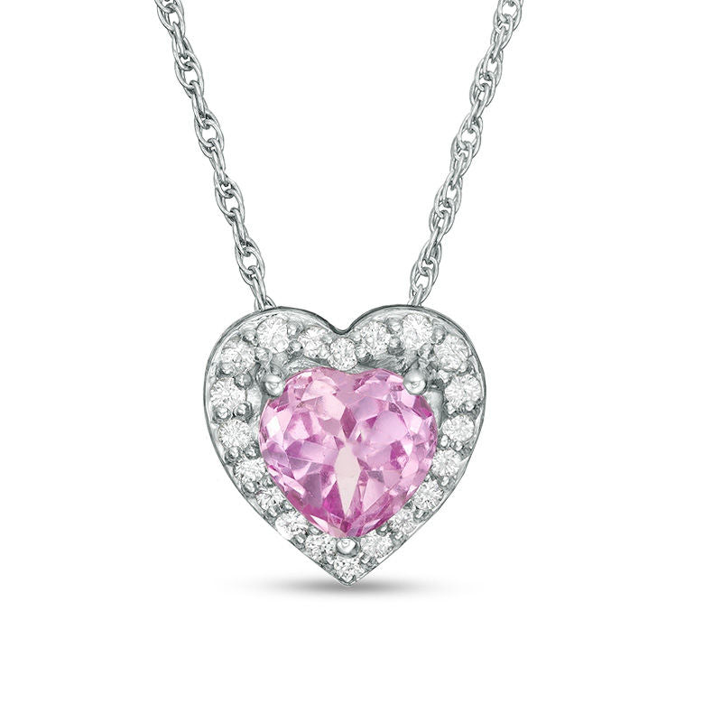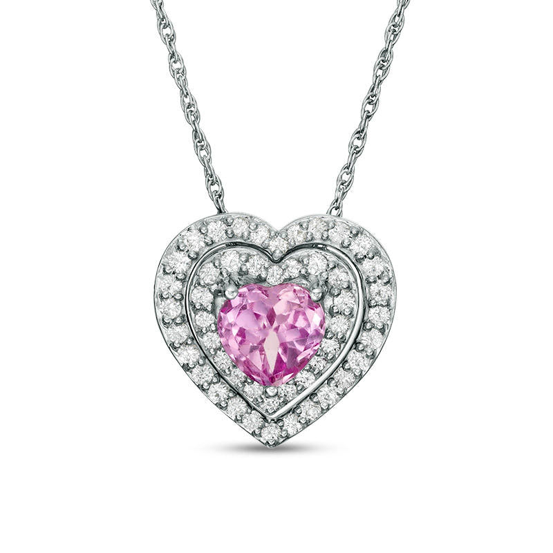 Lab-Created Pink and White Sapphire Double Frame Heart Pendant in Sterling Silver