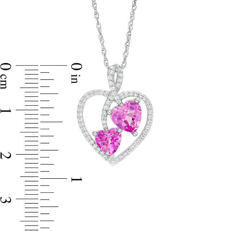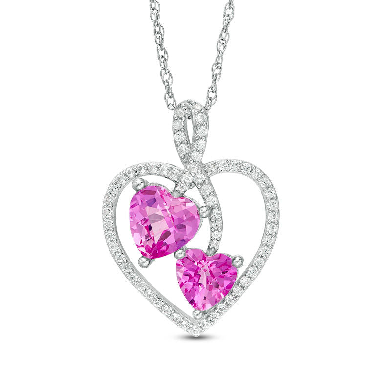 Lab-Created Pink and White Sapphire Heart Pendant in Sterling Silver