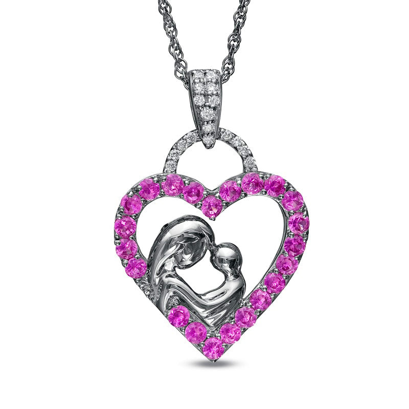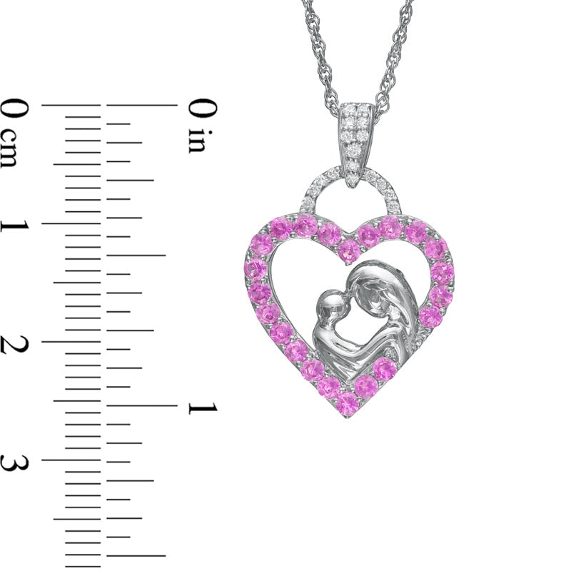 Lab-Created Pink and White Sapphire Motherly Love Heart Pendant in Sterling Silver
