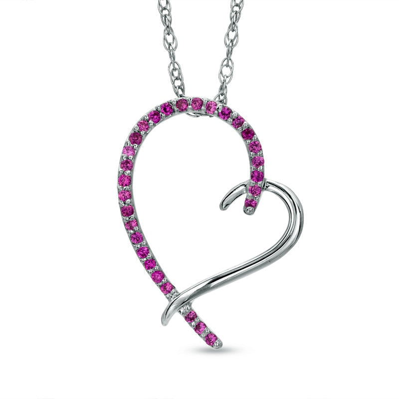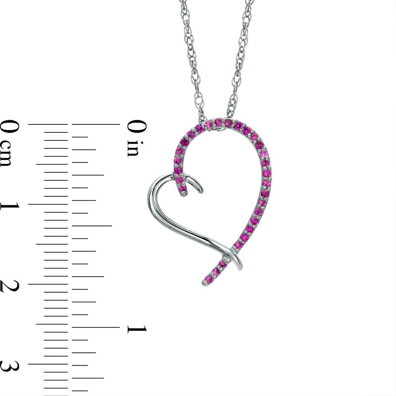 Lab-Created Pink Sapphire Tilted Heart Pendant in Sterling Silver