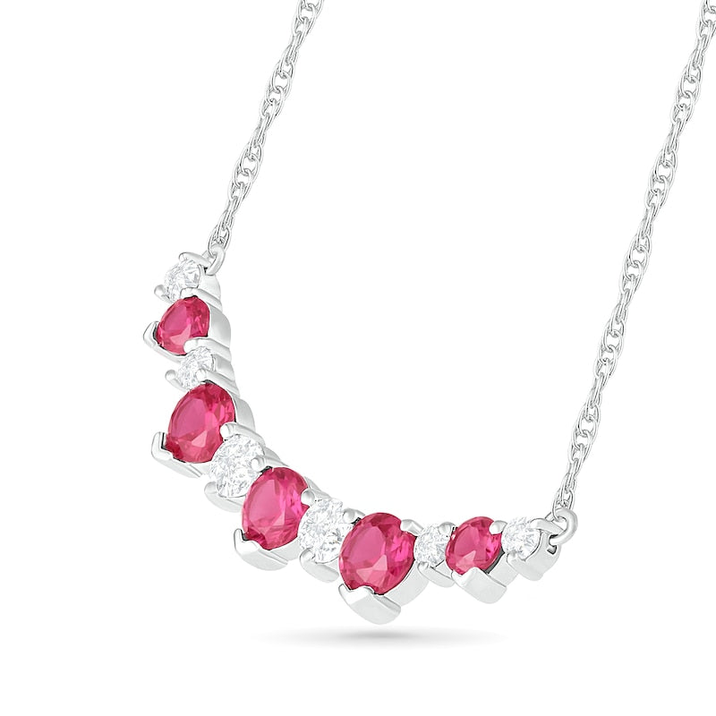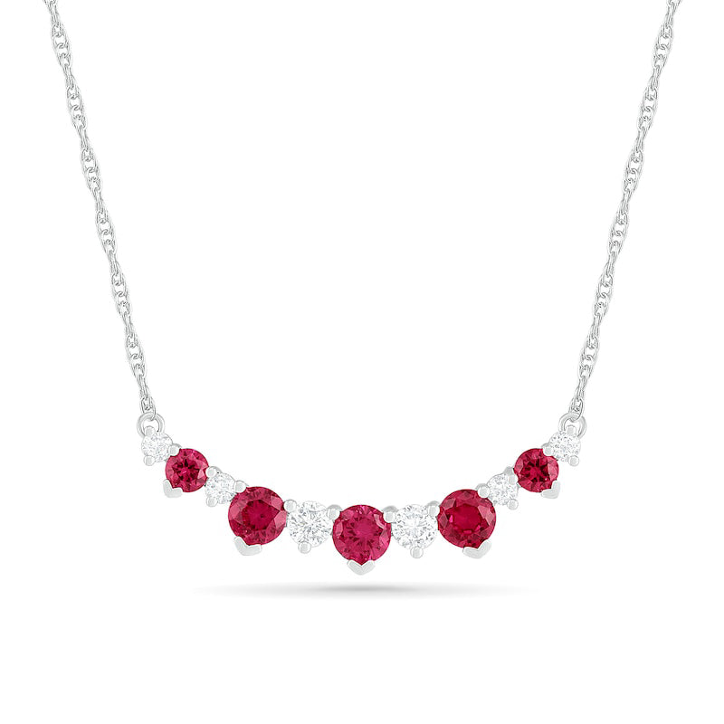 Lab-Created Ruby and White Sapphire Graduated Five Stone Curved Bar Necklace in Sterling Silver