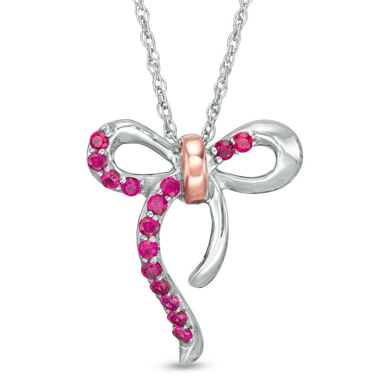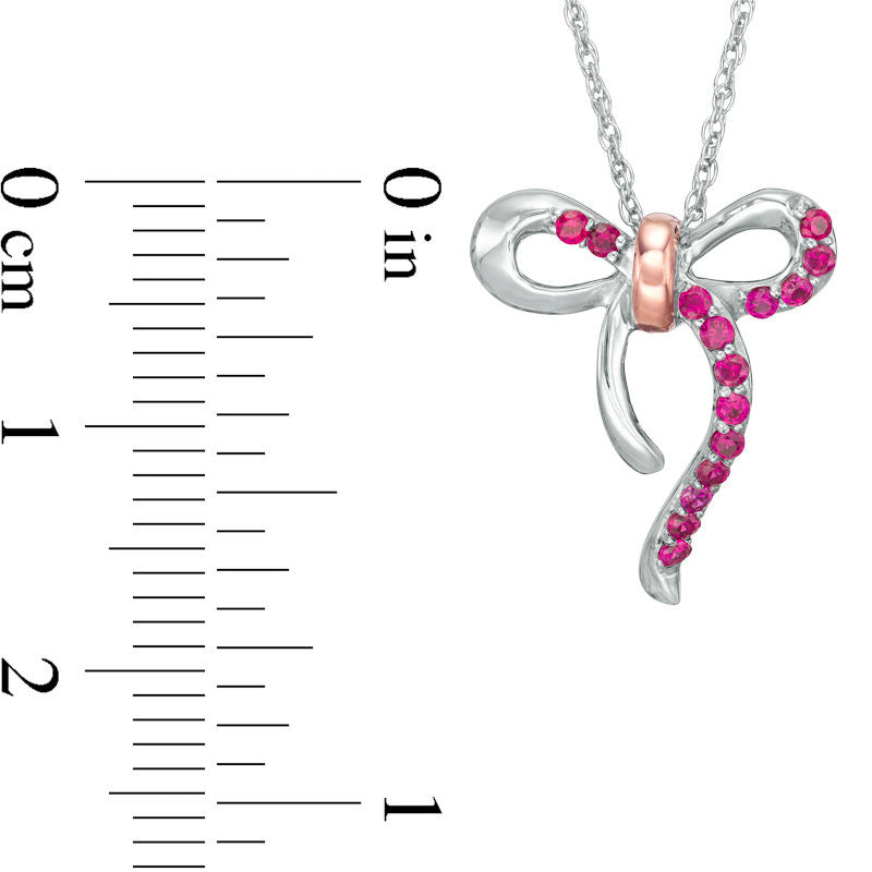 Lab-Created Ruby Bow Necklace in Sterling Silver and 10K Rose Gold