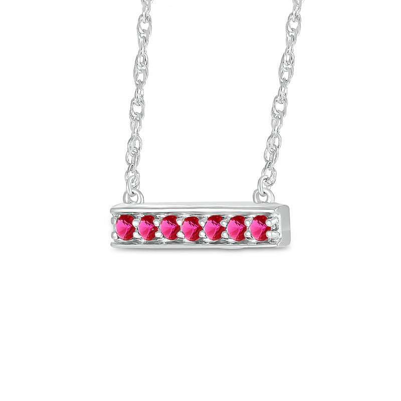 Lab-Created Ruby Seven Stone Border Bar Necklace in Sterling Silver