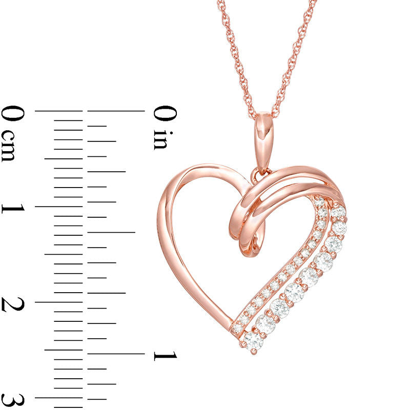 Lab-Created White Sapphire and 0.07 CT. T.W. Diamond Looping Heart Pendant in 10K Rose Gold