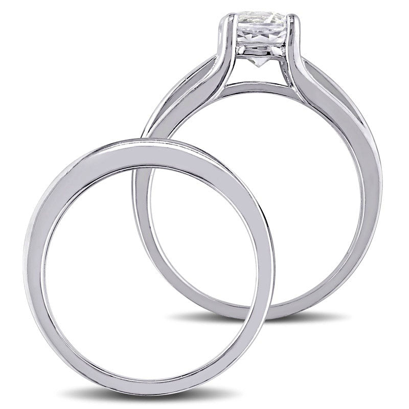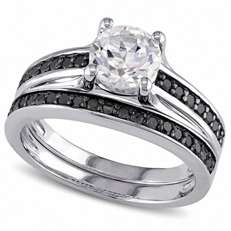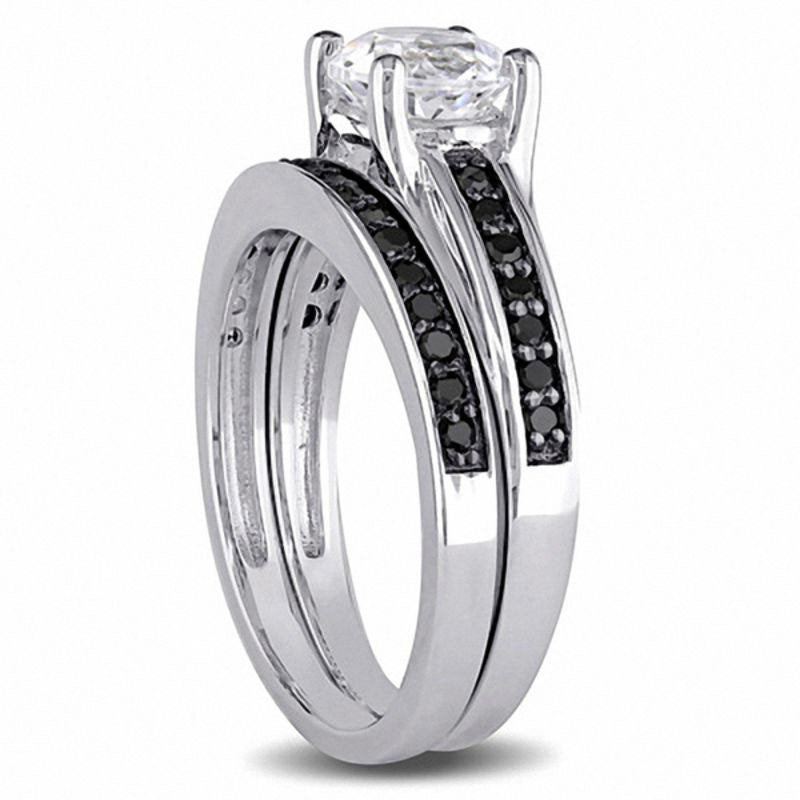 Lab-Created White Sapphire and 0.33 CT. T.W. Enhanced Black Diamond Bridal Engagement Ring Set in Sterling Silver