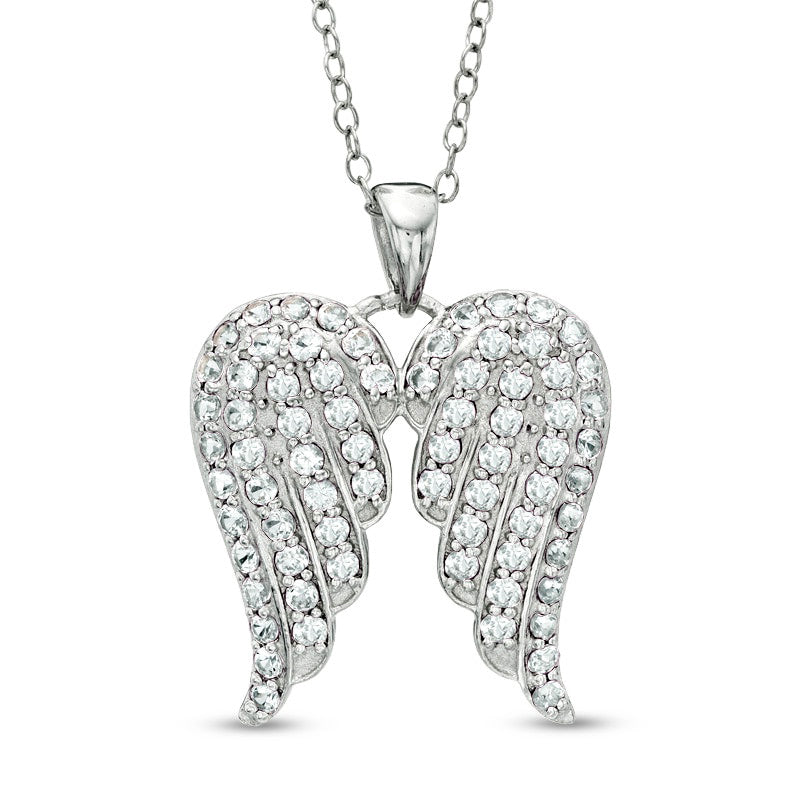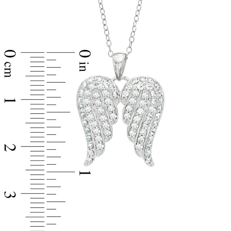 Lab-Created White Sapphire Angel Wings Pendant in Sterling Silver