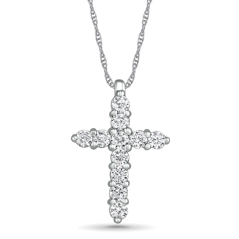 Lab-Created White Sapphire Cross Pendant in Sterling Silver