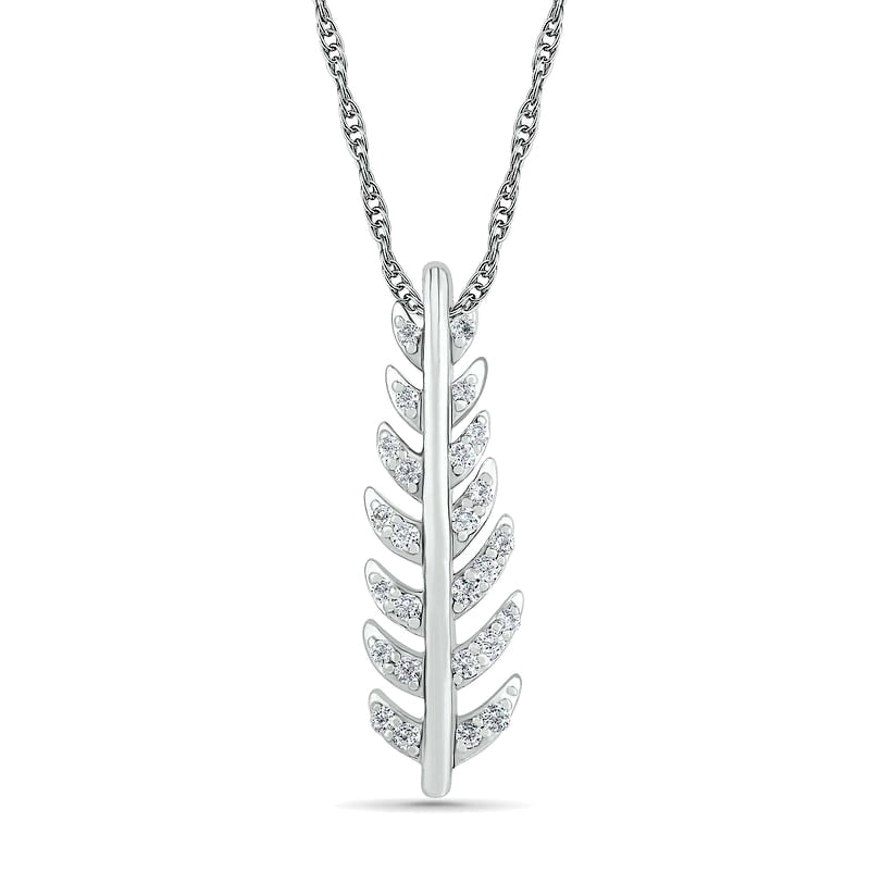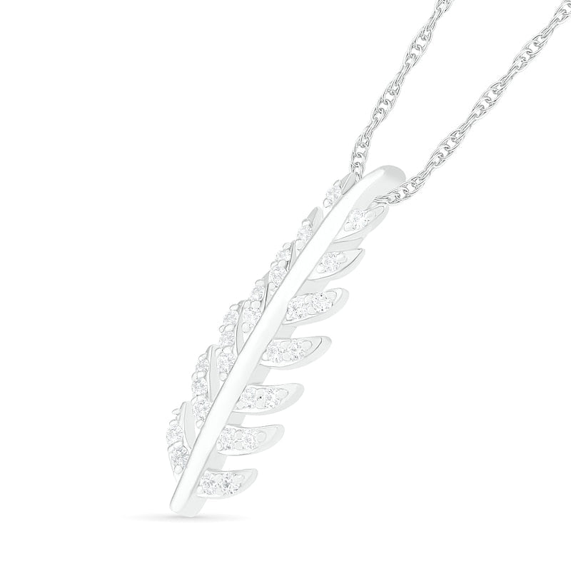 Lab-Created White Sapphire Feather Pendant in Sterling Silver