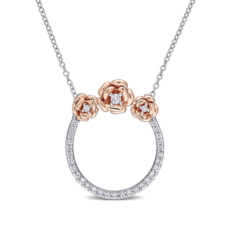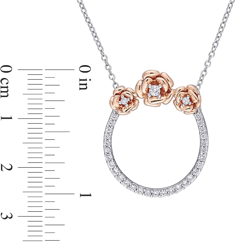 Lab-Created White Sapphire Flower Trio Circle Necklace in Sterling Silver and Rose Rhodium