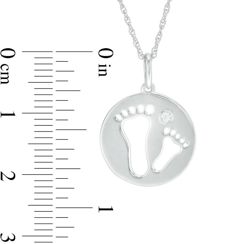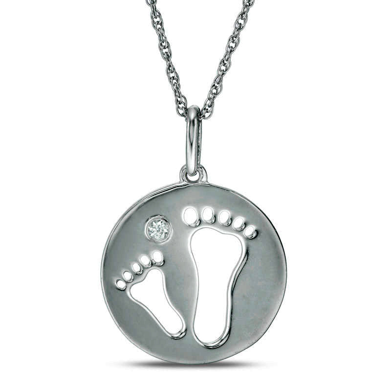 Lab-Created White Sapphire Footprints Disc Pendant in 10K White Gold
