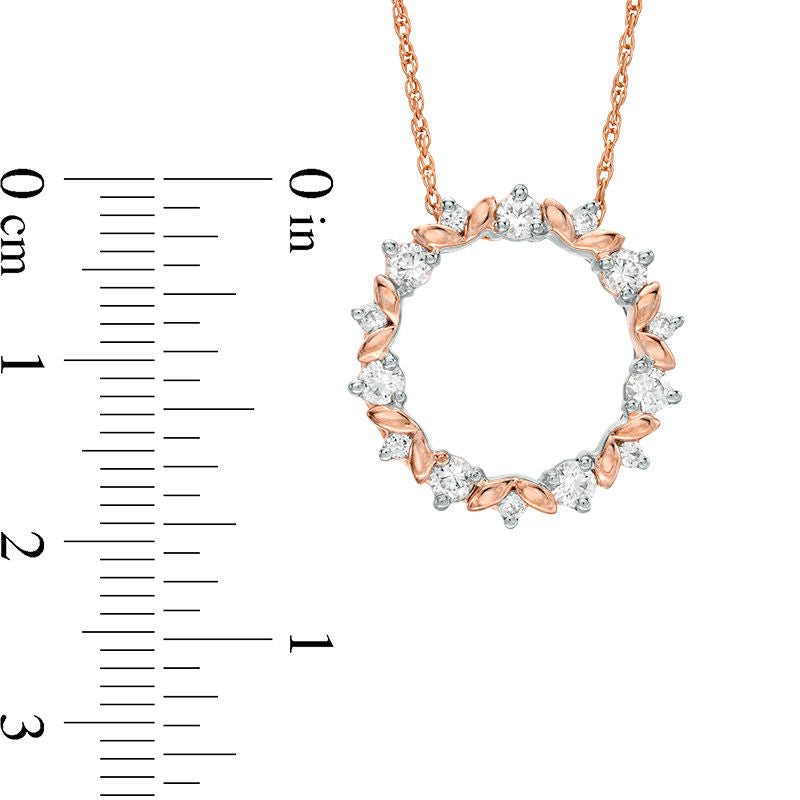 Lab-Created White Sapphire Leaf Motif Circle Pendant in 10K Rose Gold