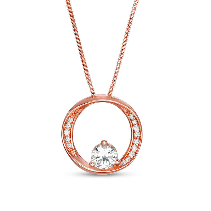 Lab-Created White Sapphire Open Circle Pendant in Sterling Silver with 18K Rose Gold Plate
