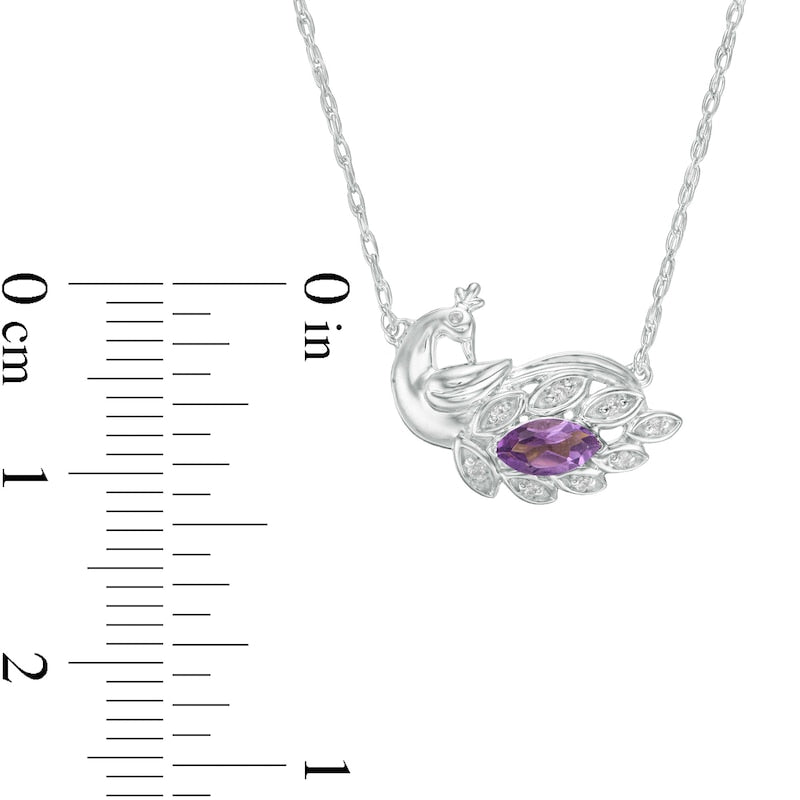 Marquise Amethyst and Natural Diamond Accent Peacock Necklace in Sterling Silver