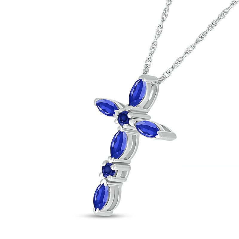 Marquise and Round Blue Lab-Created Sapphire Alternating Cross Pendant in Sterling Silver
