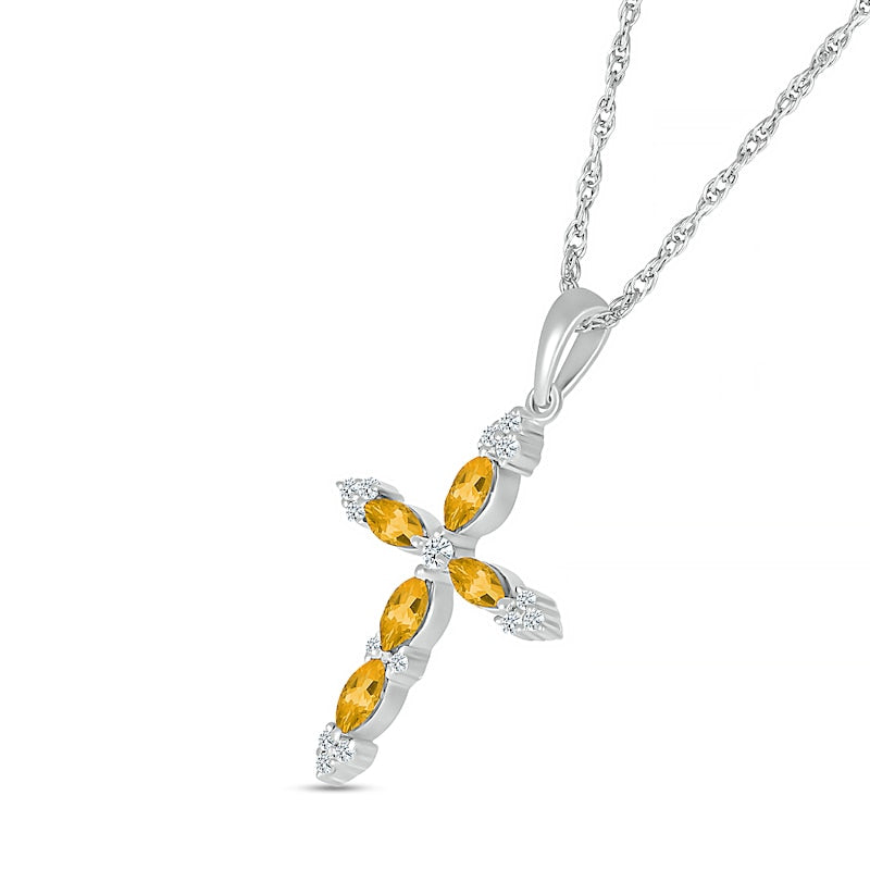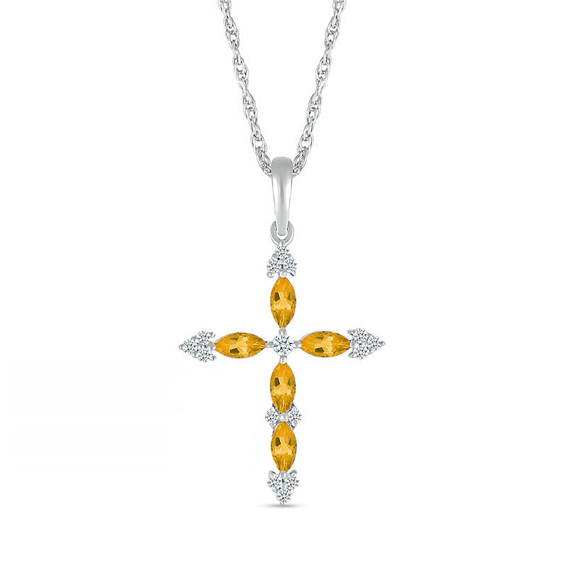 Marquise Citrine and 0.07 CT. T.W. Natural Diamond Tri-Tip Cross Pendant in Sterling Silver