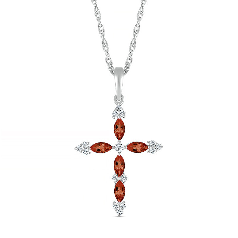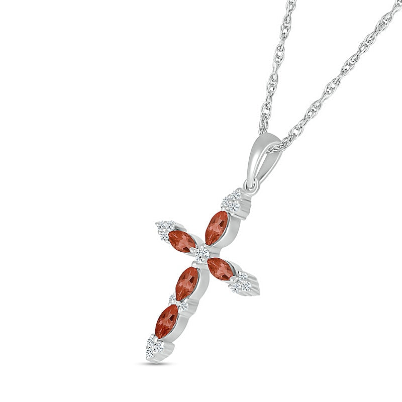 Marquise Garnet and 0.07 CT. T.W. Natural Diamond Tri-Tip Cross Pendant in Sterling Silver