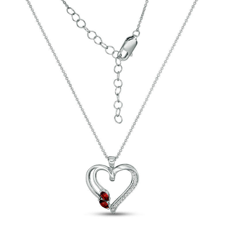 Marquise Garnet and Lab-Created White Sapphire Heart Pendant in Sterling Silver