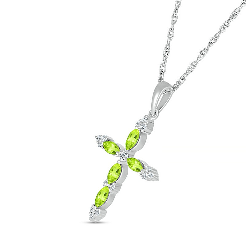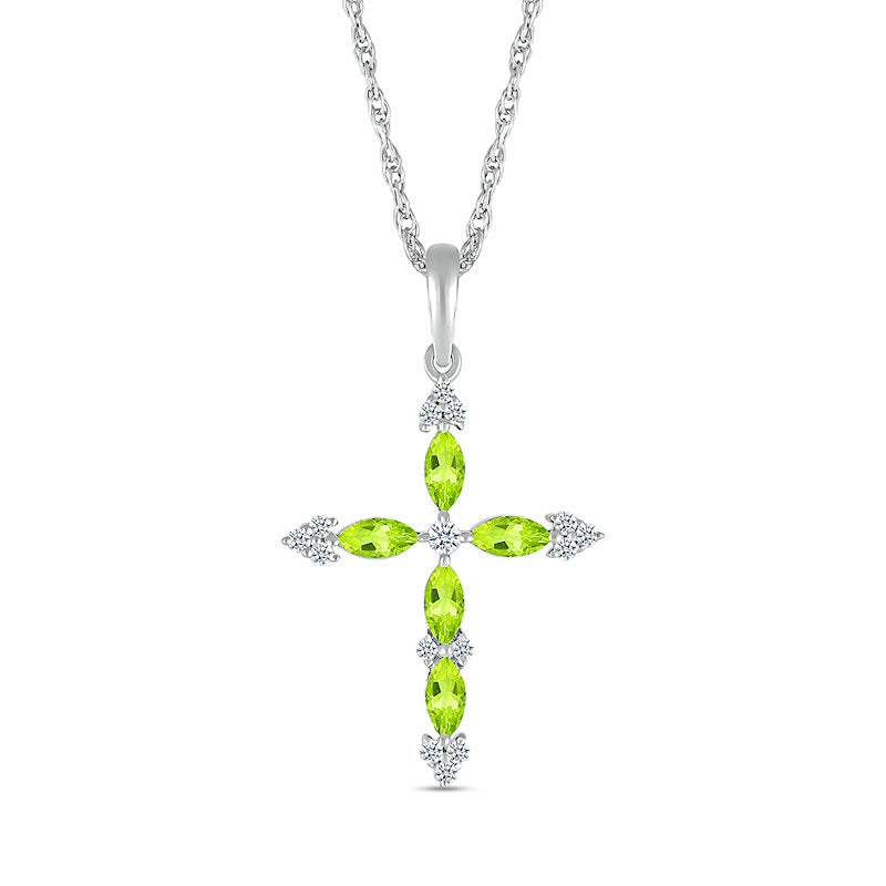 Marquise Peridot and 0.07 CT. T.W. Natural Diamond Tri-Tip Cross Pendant in Sterling Silver