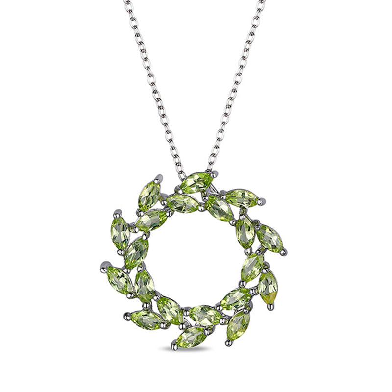 Marquise Peridot Wreath Open Circle Pendant in Sterling Silver